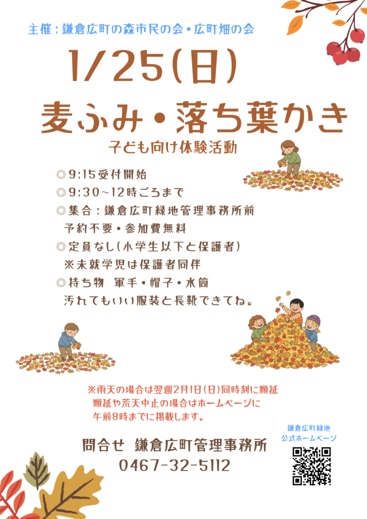 1月はこども達に人気のイベント、麦ふみ・落ち葉かきです!